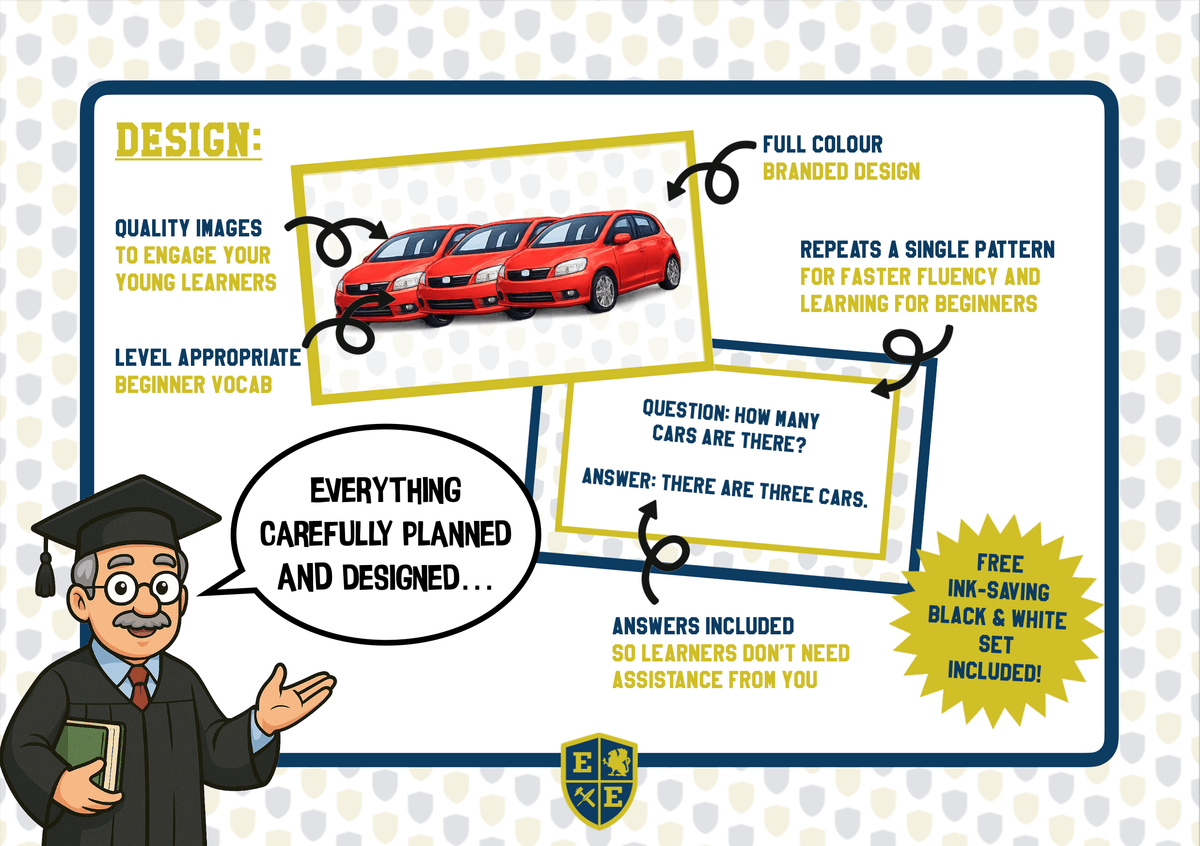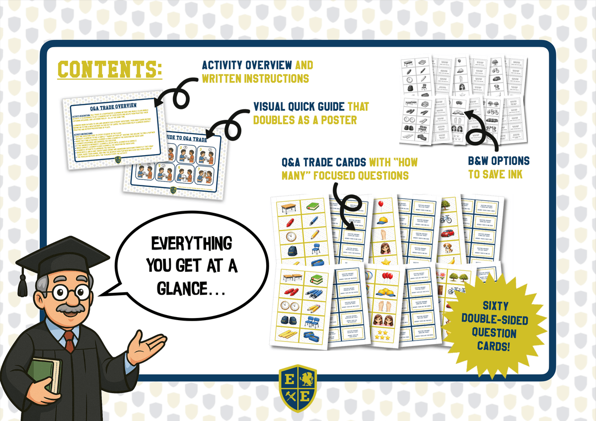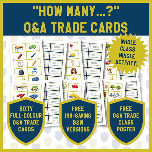 Practise How Many Questions, Plural Nouns, and There Is / There Are with this Active Speaking, whole class mingle Routine. Help beginner English learners confidently practise the question structure How many while reinforcing plural nouns and the grammar pattern there is / there are. Use this engaging Q&A Trade routine to get students moving, speaking, and repeating key beginner grammar structures many times in quick succession.